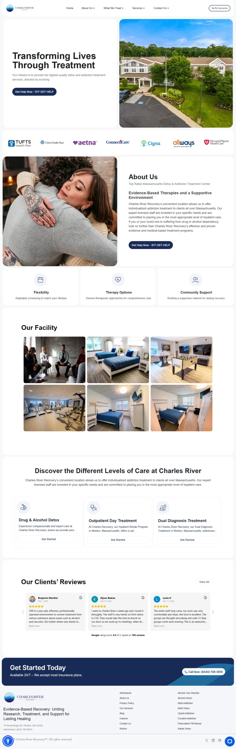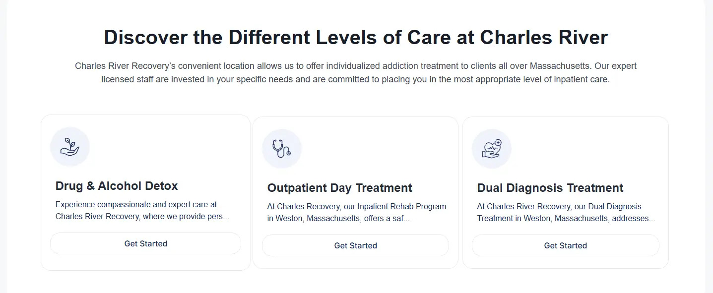 The company offers structured treatment plans tailored to each individual’s needs. Services include medical detox, clinical stabilization services (CSS), and dual diagnosis care. Treatment plans are developed by licensed professionals and incorporate both therapy and medication-assisted treatment (MAT). Programs address substance use disorders such as alcohol, opioids, stimulants, and benzodiazepines. Charles River Recovery focuses on building strong clinical foundations for continued outpatient or residential care after discharge.