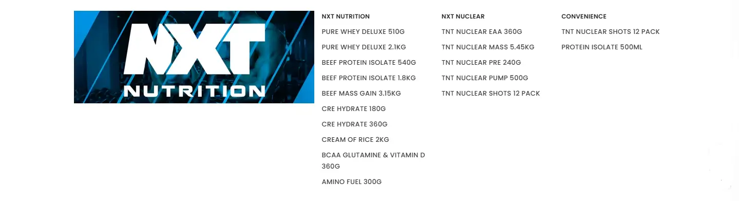 NXT Nutrition – science-backed core products like Pure Whey Deluxe and Beef Protein Isolate